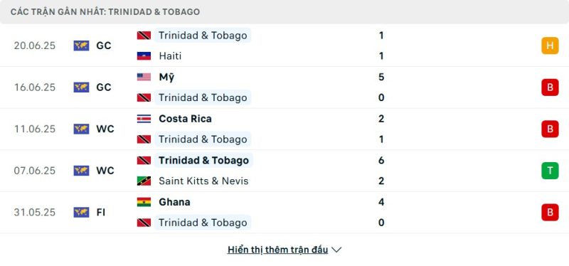 5 trận gần nhất của Trinidad & Tobago: D-L-L-W-L