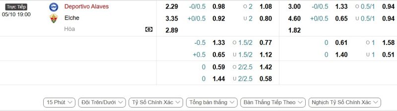 Bảng Tỷ lệ kèo bóng đá Alavés vs Elche