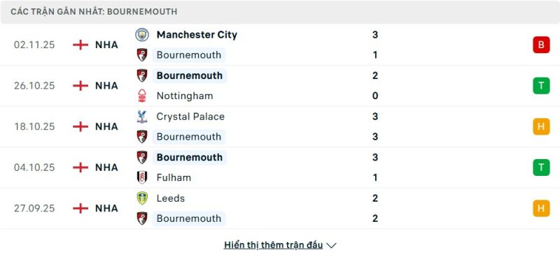 Bên kia chiến tuyến, Bournemouth đang là “ngựa ô” thú vị của mùa giải năm nay. Thầy trò HLV Andoni Iraola đang bay cao ở vị trí thứ 5 với 18 điểm. Họ trình diễn một lối chơi tấn công hiệu quả, đã ghi được 17 bàn thắng. Phong độ gần đây của “The Cherries” khá ổn định, dù vừa bị Man City đánh bại 1-3. Trước đó, họ có những kết quả tích cực như chiến thắng 2-0 trước Forest hay cầm hòa Crystal Palace. Chuyến làm khách này sẽ là một bài kiểm tra thực sự cho tham vọng của Bournemouth.