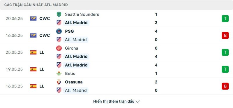 Atlético Madrid bước vào trận đấu với hành trang là chuỗi phong độ ổn định nhưng thiếu sự bền vững ở hàng thủ. Trong các trận gần đây, họ ghi được nhiều bàn thắng và thể hiện sức tấn công mạnh mẽ trước các đối thủ ở La Liga cũng như Seattle Sounders tại Club World Cup. Tuy nhiên, điểm trừ lớn là khả năng phòng ngự khi đội bóng thủng lưới ở 4/5 trận gần nhất. Sự phập phù với những thất bại trước PSG hay Osasuna cho thấy đoàn quân của Diego Simeone vẫn chưa đạt được sự cân bằng tuyệt đối giữa tấn công và phòng ngự.