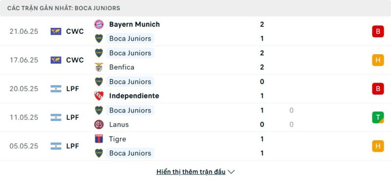 - Phong độ của Boca Juniors