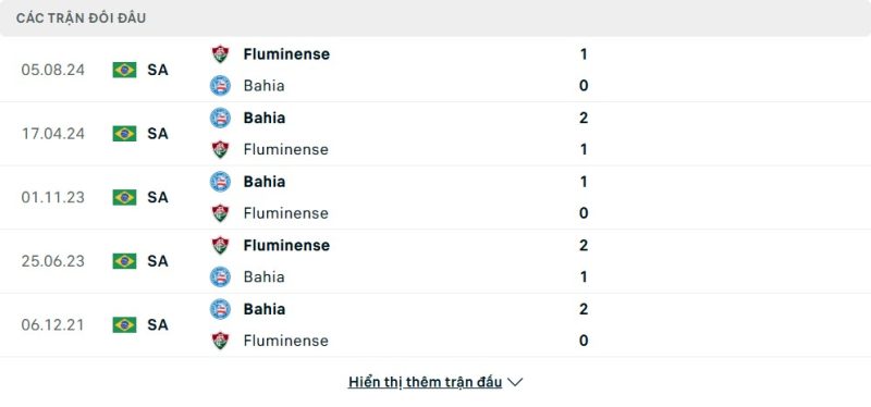 Thành tích đối đầu của Bahia vs Fluminense