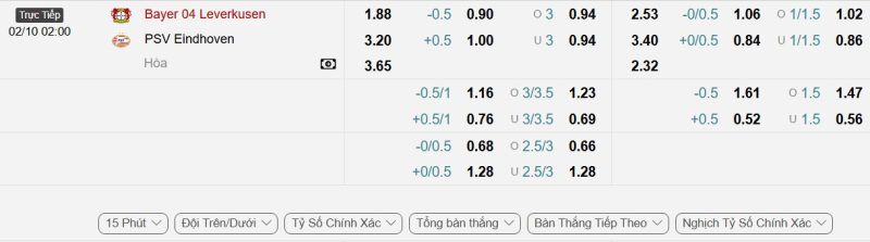 Bảng Tỷ lệ kèo bóng đá Bayer Leverkusen vs PSV Eindhoven