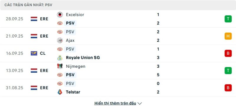 Phong độ của PSV Eindhoven