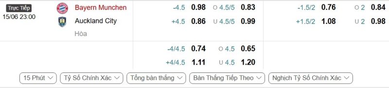 Bảng Tỷ lệ kèo bóng đá Bayern Munich vs Auckland City