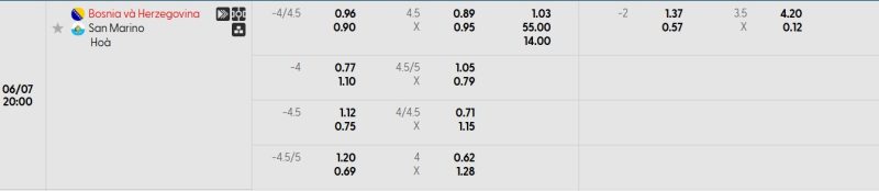 Bảng Tỷ lệ kèo bóng đá Bosnia & Herzegovina vs San Marino