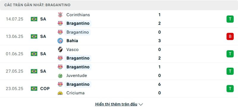 5 trận gần nhất của Red Bull Bragantino: W-L-W-W-W