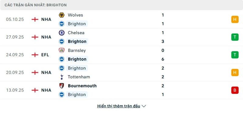 • Phong độ của Brighton & Hove Albion