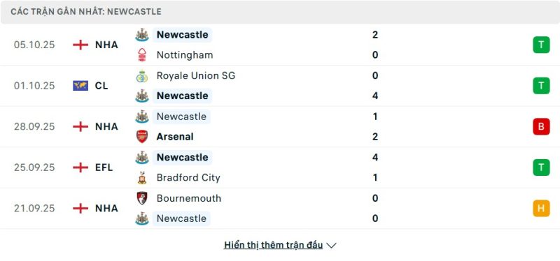 • Phong độ của Newcastle United