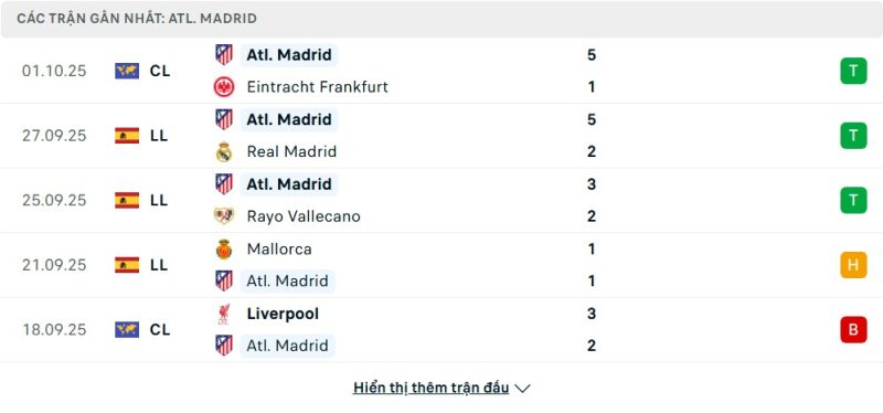 Atlético Madrid của Diego Simeone vẫn giữ vững phong độ đáng nể trong mùa giải này. Đội bóng thủ đô Tây Ban Nha hiện đang xếp thứ 5 trên bảng xếp hạng, với 3 chiến thắng trong 5 trận gần nhất. Những chiến thắng thuyết phục trước Real Madrid và Rayo Vallecano cho thấy sức mạnh của Atlético, đặc biệt là khi họ đang nắm trong tay đội hình chất lượng. Tuy nhiên, thất bại trước Espanyol là lời nhắc nhở cho đội bóng về những thử thách phía trước.