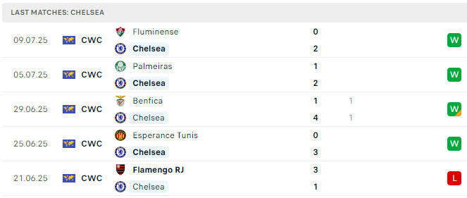 Thống kê phong độ gần đây Chelsea vs Paris Saint-Germain