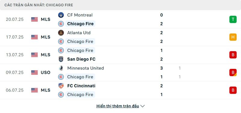 • Phong độ của Chicago Fire