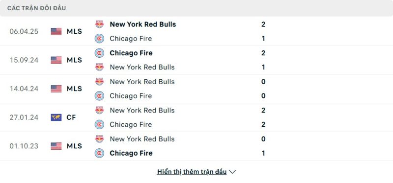 Thành tích đối đầu của Chicago Fire vs New York Red Bulls