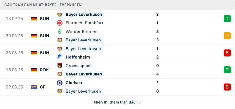 Phong độ của Bayer Leverkusen
