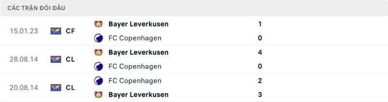 Thành tích đối đầu của Copenhagen vs Bayer Leverkusen