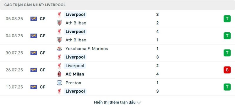 Bên kia chiến tuyến, Liverpool đang cho thấy phong độ rất ấn tượng trong giai đoạn tiền mùa giải. Họ thắng liền ba trận gần nhất, trong đó có màn ngược dòng ấn tượng trước Athletic Bilbao (thắng 4-1 và 3-2 ở hai trận). Trận đấu với Yokohama F. Marinos cũng chứng kiến sức tấn công hiệu quả khi The Reds thắng 3-1. Duy chỉ có trận gặp AC Milan là Liverpool để thua, nhưng đó cũng là trận duy nhất họ chơi dưới sức. Tập thể của Arne Slot rõ ràng đang vào guồng.