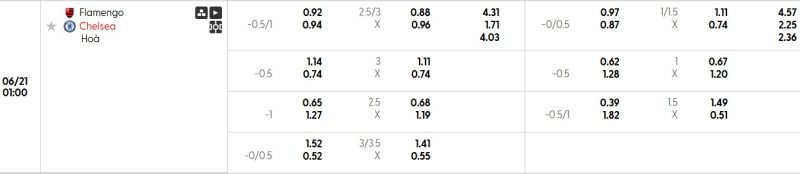 Bảng Tỷ lệ kèo bóng đá Flamengo vs Chelsea