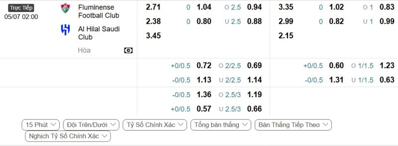 Bảng Tỷ lệ kèo bóng đá Fluminense vs Al-Hilal