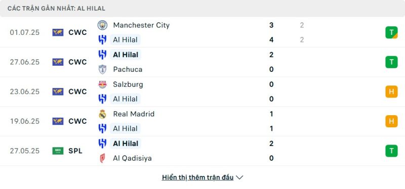 Phong độ của Al-Hilal