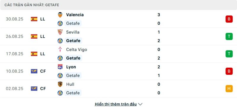 - Phong độ của Getafe