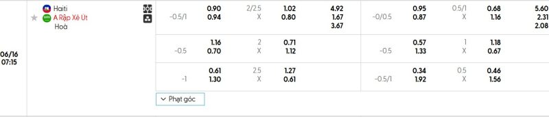 Bảng Tỷ lệ kèo bóng đá Haiti vs Ả Rập Xê Út