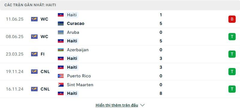 5 trận gần nhất của Haiti: L-W-W-W-W