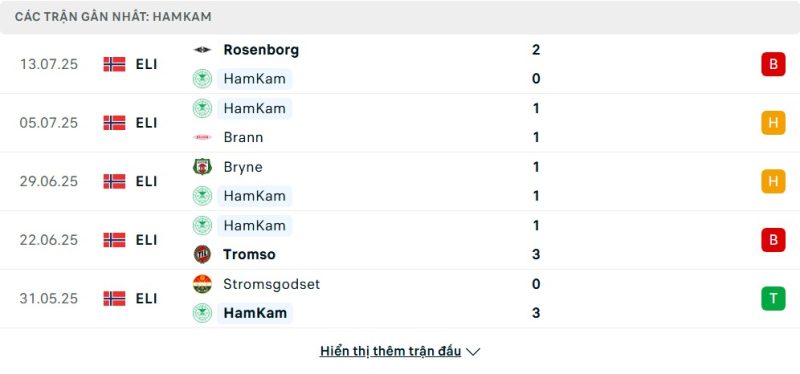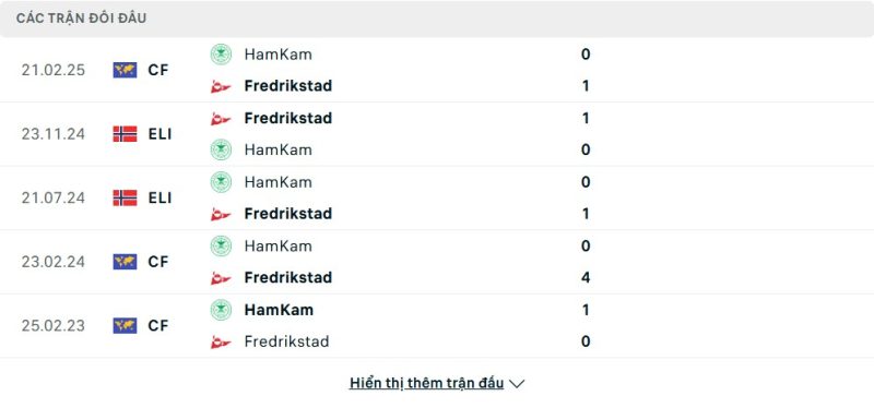 Thống kê phong độ gần đây HamKam vs Fredrikstad