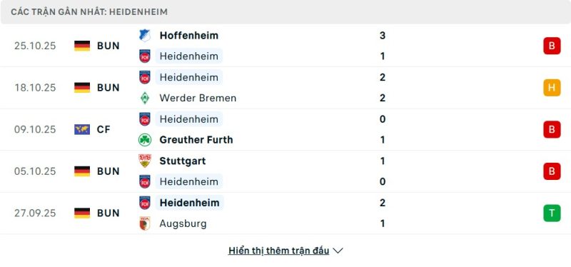 - Phong độ của 1. FC Heidenheim