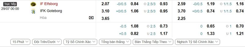 Bảng Tỷ lệ kèo bóng đá IF Elfsborg vs IFK Göteborg