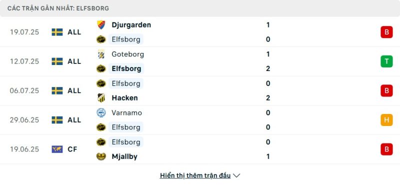 Phong độ của IF Elfsborg