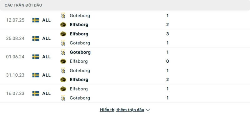 Thành tích đối đầu của IF Elfsborg vs IFK Göteborg