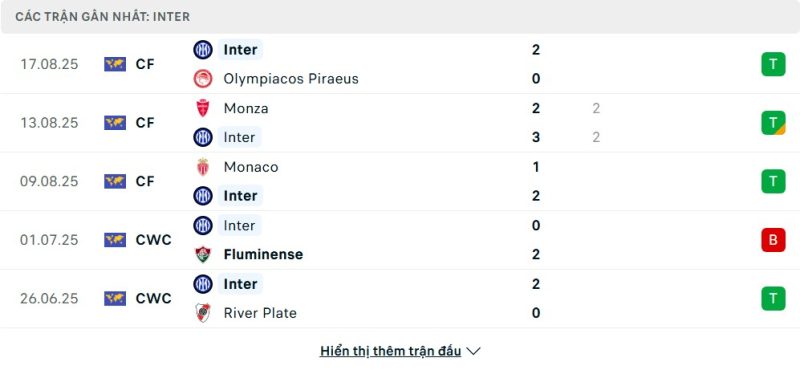 Inter Milan bước vào mùa giải mới với tâm thế của một ứng cử viên hàng đầu cho danh hiệu Scudetto. Phong độ của họ trong giai đoạn tiền mùa giải là cực kỳ ấn tượng, thể hiện qua những chiến thắng thuyết phục trước các đối thủ có thực lực như Olympiacos 2-0 và AS Monaco 2-1. Không chỉ vậy, Nerazzurri còn cho thấy sức mạnh tấn công hủy diệt khi vùi dập đội U23 với tỷ số 7-2. Loạt trận giao hữu thành công này là bước chạy đà hoàn hảo, giúp toàn đội có được sự tự tin và thể trạng tốt nhất trước khi bước vào trận khai màn Serie A trên sân nhà.