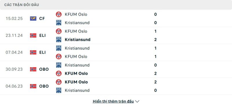 Thành tích đối đầu của Kristiansund vs KFUM