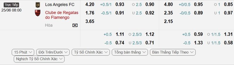 • Kèo tỷ số bóng đá hiệp 1: Los Angeles FC 0-0 Flamengo