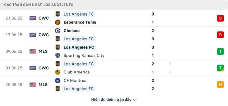 • Phong độ của Los Angeles FC