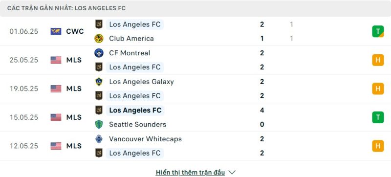 Thống kê phong độ gần đây Los Angeles FC vs Sporting Kansas City