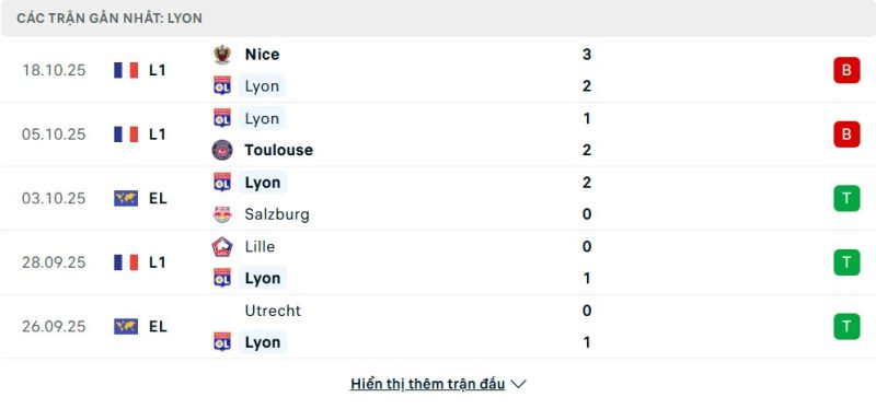 Lyon đang cho thấy sự ổn định tương đối với phong độ tốt ở cả Ligue 1 lẫn đấu trường châu Âu. Dưới thời HLV Paulo Fonseca, đội bóng vùng Rhône đang dần trở lại nhóm cạnh tranh nhờ lối chơi hiệu quả. Trong tám trận gần nhất, Lyon thắng năm, đặc biệt là những chiến thắng trước Lille, Angers và Marseille. Dù để thua Nice và Toulouse, nhưng họ vẫn giữ vị trí vững vàng trong nhóm trên bảng xếp hạng. Hàng công của Lyon đang có hiệu suất cao, còn hàng thủ cho thấy dấu hiệu cải thiện đáng kể so với đầu mùa.
