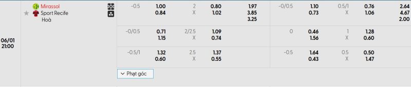 Dù được đánh giá cao hơn, nhưng Mirassol không phải là đội thường xuyên nhập cuộc ào ạt. Họ chơi kiểm soát, thận trọng và không mạo hiểm dâng cao đội hình từ đầu. Trong khi đó, Sport Recife gần như chắc chắn sẽ đá phòng ngự số đông nhằm kéo dài thế trận càng lâu càng tốt. Mức kèo tài xỉu mà nhà cái niêm yết là 0.75 với tỷ lệ cho tài là 0.76, tỷ lệ cho xỉu là 1.06, người chơi nên đặt niềm tin vào cửa xỉu cho hiệp đấu này.