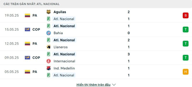 • Phong độ của Atlético Nacional