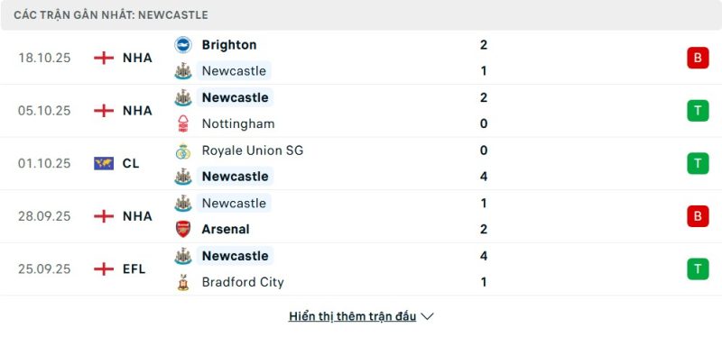 - Phong độ của Newcastle United