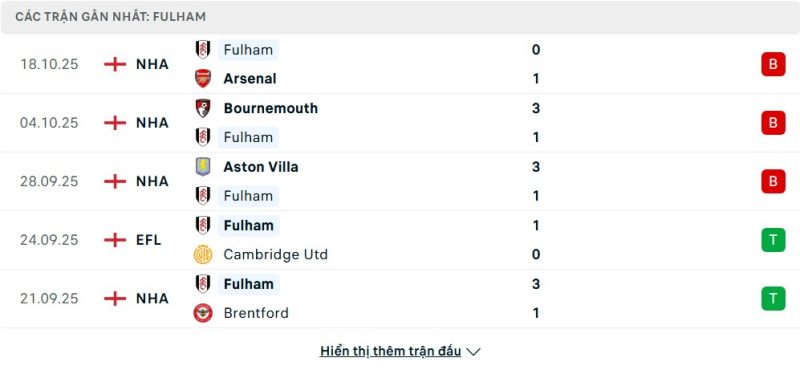 - Phong độ của Fulham
