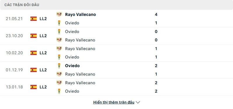 Thành tích đối đầu của Oviedo vs Rayo Vallecano