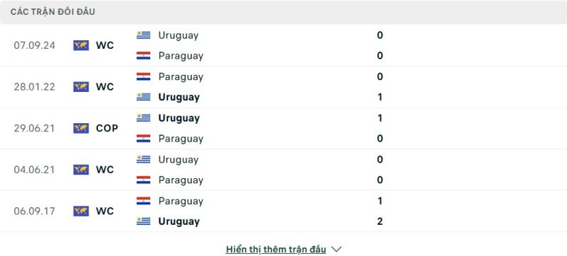 Thống kê phong độ gần đây Paraguay vs Uruguay