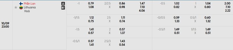 Bảng Tỷ lệ kèo bóng đá Phần Lan vs Lithuania