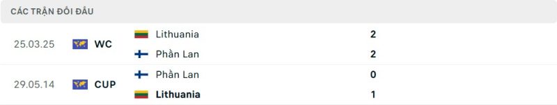 Thành tích đối đầu của Phần Lan vs Lithuania