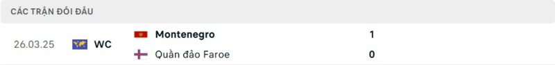 Thành tích đối đầu của Quần đảo Faroe vs Montenegro