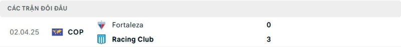 Trận đối đầu gần nhất giữa hai đội đã chứng kiến Racing Club vùi dập Fortaleza với tỷ số 3-0. Đây là minh chứng rõ ràng cho sự chênh lệch về đẳng cấp và bản lĩnh thi đấu tại sân chơi Copa Libertadores. Với lợi thế sân nhà, lực lượng vượt trội và phong độ ổn định, Racing Club được đánh giá cao hơn và khả năng giành chiến thắng là rất lớn. Fortaleza sẽ nỗ lực để có ít nhất một điểm, nhưng sự chênh lệch về trình độ sẽ là rào cản lớn khiến họ khó hoàn thành mục tiêu.