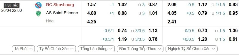 Bảng Tỷ lệ kèo bóng đá RC Strasbourg vs Saint-Étienne