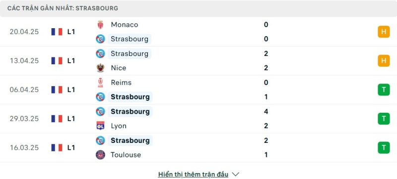 - Phong độ của RC Strasbourg