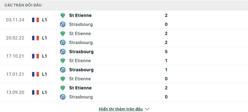 Thành tích đối đầu của RC Strasbourg vs Saint-Étienne